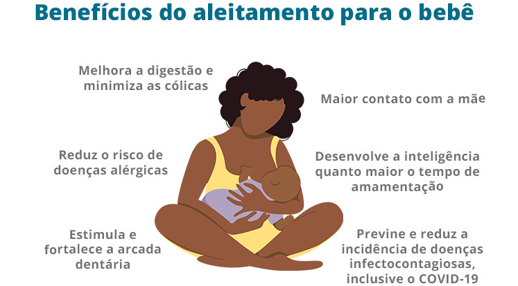 Para a criança, o aleitamento materno reduz o risco de diabetes, hipertensão, hipercolesterolemia e obesidade na vida adulta, favorece o desenvolvimento cognitivo e o desenvolvimento da face e da fala, bem como da respiração, e para a mãe fornece vantagens como proteção contra câncer de mama e diabetes tipo 2, além de fortalecer o vínculo entre mãe e filho.